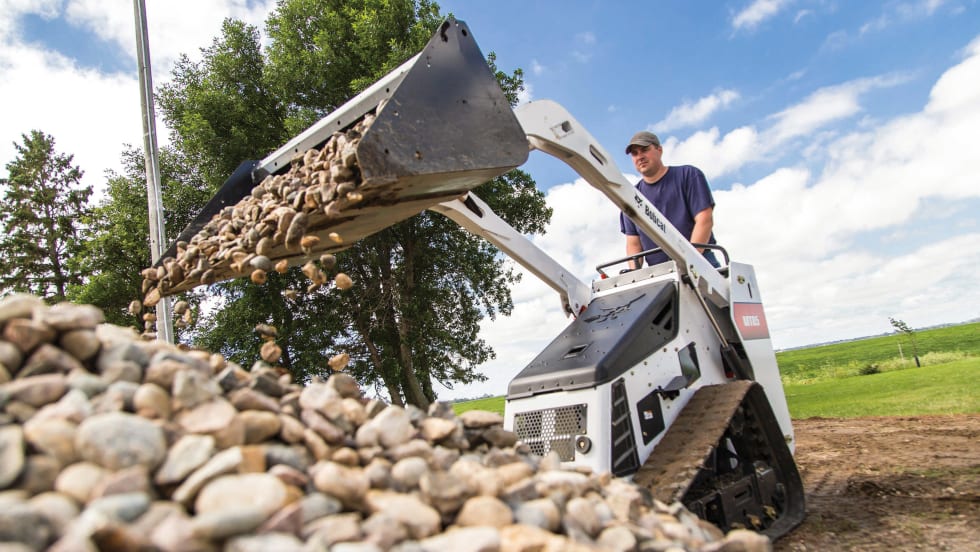The Terramac RT14R crawler carrier uses its spinning ability and rubber track technology to make offloading materials more efficient and safe.
