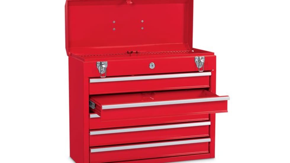 The storage box's dual lids align with a 60-40 split in the rear seat while featuring low-profile latches that lock with included keys.