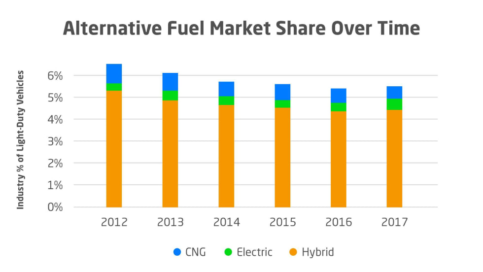 Utilities have a low percentage of alternative-fuel vehicles in their light-duty fleets, and the number has been decreasing, according to Utilimarc.