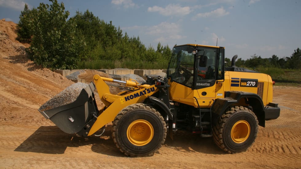 The Komatsu WA270-8 wheel loader boasts several advantages, including an engine that uses up to 3% less fuel than its predecessor.