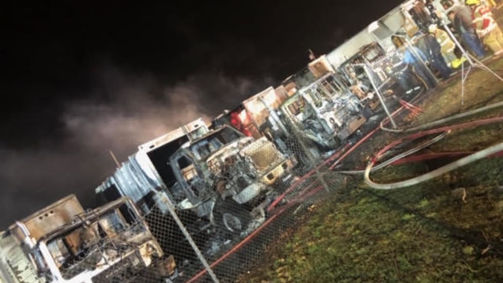 A fire that started in the City of Scottsdale, Ariz., solid waste truck spread to adjacent trucks, resulting in the damage or destruction of 12 trucks.