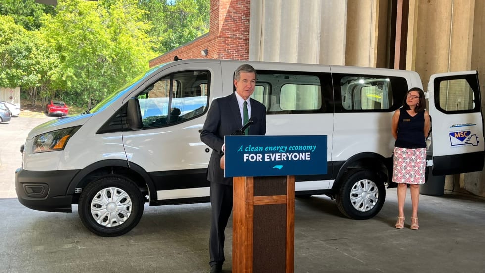 The Department of Administration has seven new Ford E-Transit cargo vans and six charging stations that are used to transport mail between state government agencies.