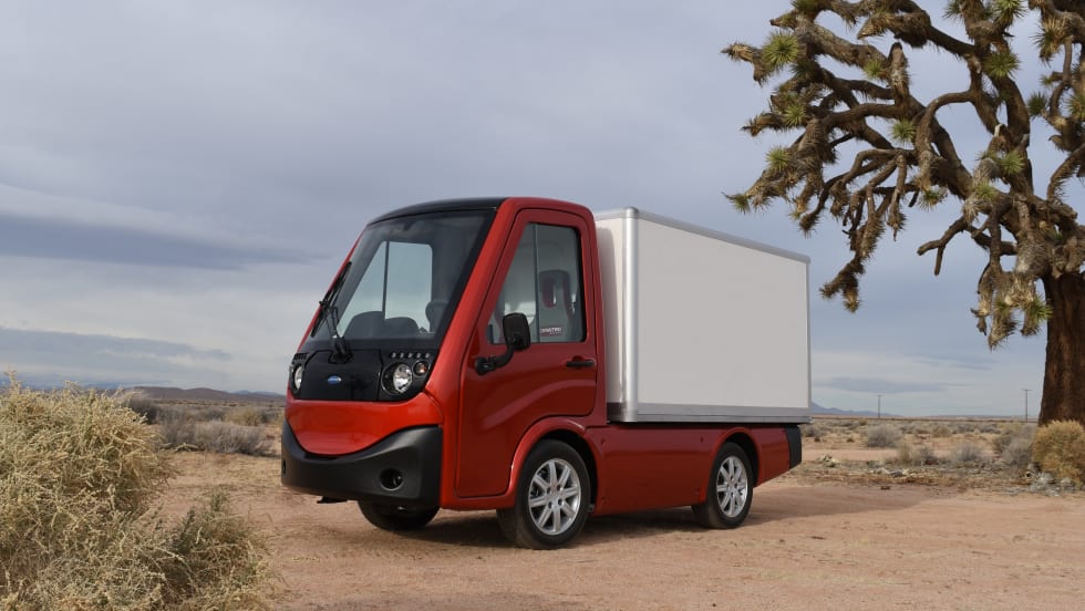 The battery-electric Cenntro METRO is a modular vehicle suited for maintenance crew transportation, parking enforcement, local delivery, and transport on university campuses.