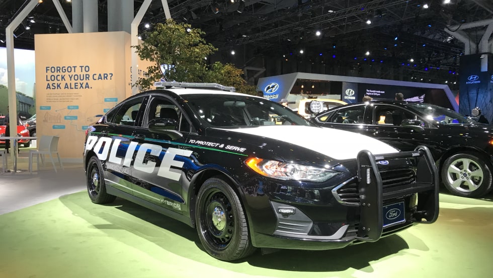 Ford displayed production versions of the Police Responder Hybrid Sedan and Special Service Plug-In Hybrid Sedan at the New York Auto Show. Concept models for these vehicles were announced in 2017. Photos courtesy of Ford