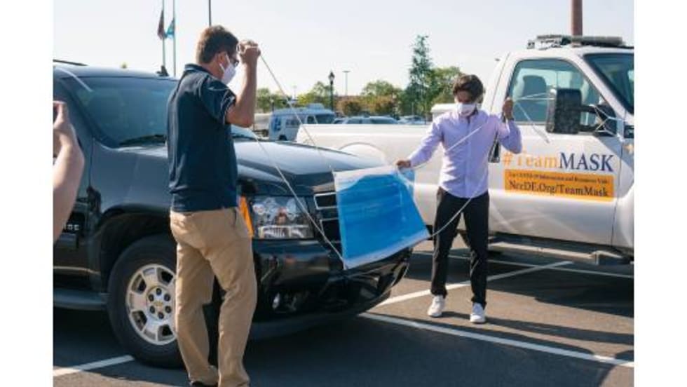 Gigantic face masks have been placed on New Castle County, Del. government vehicles as part of a public awareness campaign to curb the spread of COVID-19.
