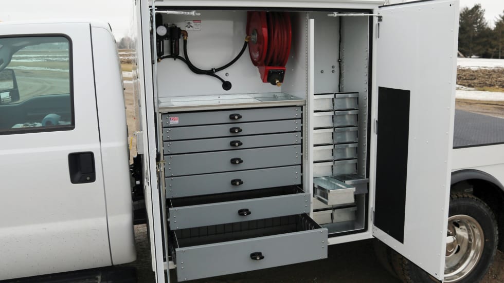 Reading's Redi-Gate tailgate provides concealed storage space for frequently used items, and is designed to be integrated with the Classic II service body.