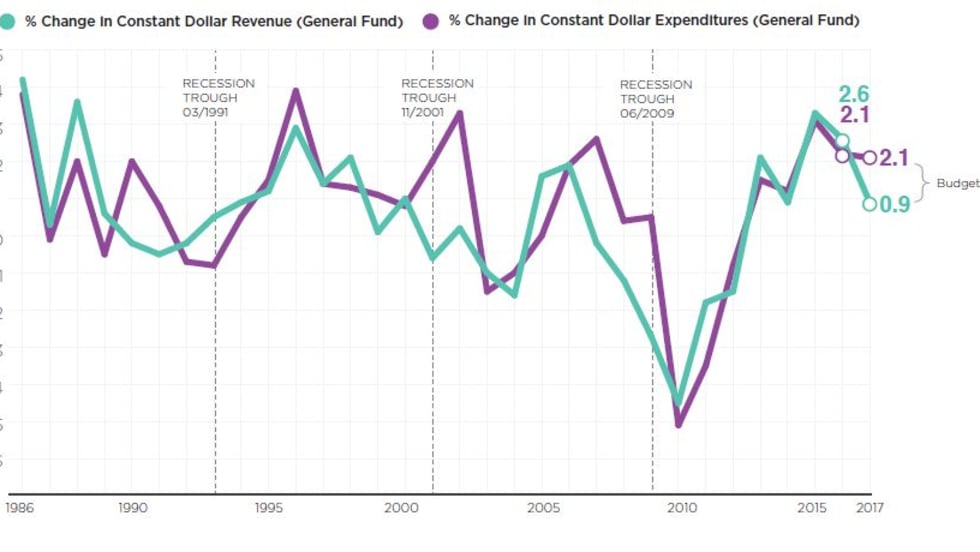 The NLC survey reported that cities’ General Fund revenues have still not yet fully recovered from the 2006 recession and remain at less than 98% of that year’s levels.