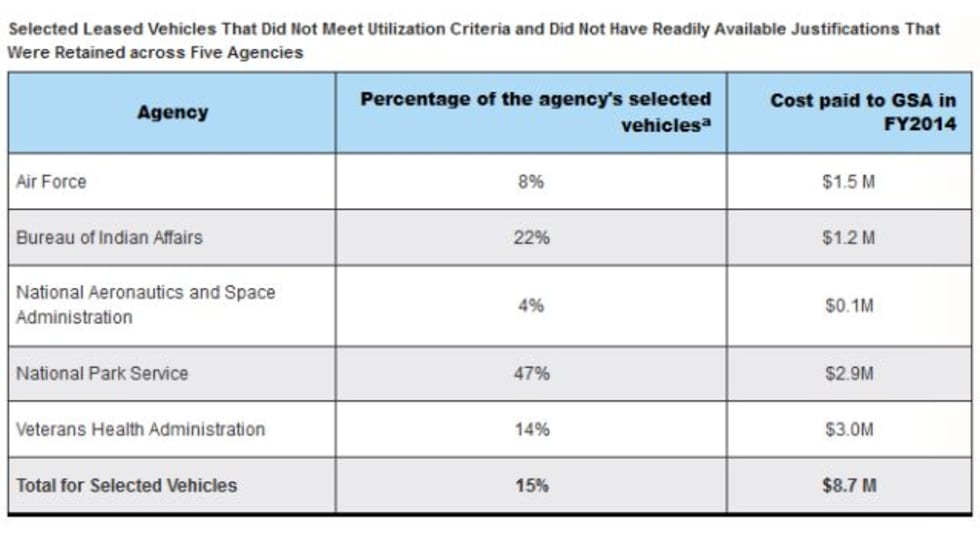 Five federal agencies spent may have $8.7 million leasing underutilized vehicles from the U. S. General Services Administration (GSA), according to a recent audit by the Government Accountability Office (GAO).